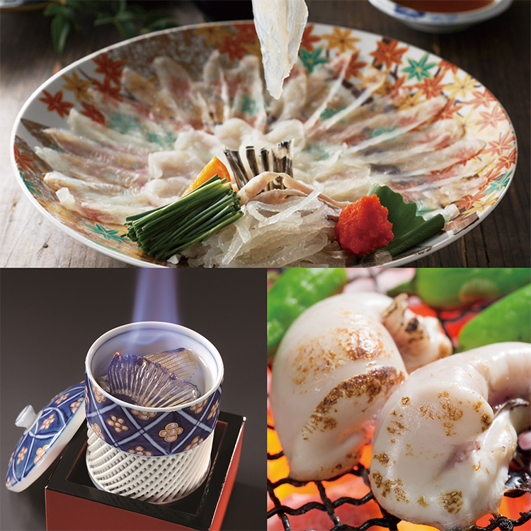 刺身盛り合わせ(2人前) 胡麻かんぱち 天然ふぐちり 養殖ふぐちり 養殖虎ふぐ瞬間しゃぶ 天然あらしゃぶ |